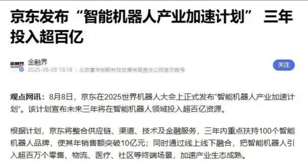 这里没有保守导购,配角是能跑能跳的机械狗和初具人形轮廓的机械人。这是京东取宇树科技结合打制的全球首家线下机械人体验店,标记着两边的合做从幕后研发、线上发卖,正式走到了公共消费者的面前。然而,这间体验店仅仅是冰山一角。它揭开的是京东正在2025年加快疾走的机械人计谋全景——从超百亿的财产投资,到将来五年410万台的惊天采购打算,再到手艺出海至欧洲的聪慧仓库。取此同时,凭仗占领全球近七成市场份额的四脚机械人,宇树科技正从极客玩具的制制商,加快迈向工业取家庭场景的赋能者。这场强强结合,远不止于开一家炫酷的商铺,它是正在智能时代的十字口,一位具有超等场景和数据的巨人,取一位顶尖的“身体”制制商联袂,配合按下了机械人普及的快进键,试图从头定义物流、零售甚至我们糊口的将来。对京东而言,这是巩固护城河、斥地新疆场的双沉必需。起首,物流成本是电商永久的焦点命题。截至2025年12月,中国快递年营业量已冲破1800亿件,再创汗青新高。面临天量包裹和持续攀升的人力成本,京东必需将从动化进行到底。其物流“超脑”大模子取“狼族”机械人军团,已办理近百个场景,但次要集中于尺度化仓库。而物流实正的难点正在于“最初一公里”及复杂场景的柔性顺应。这恰是宇树四脚机械人的潜力所正在——它能爬楼梯、顺应非铺拆面,处理无人配送车从小区大门到单位楼下的“最初五十米”难题。其次,京东需要新的增加引擎。做为零售巨头,它目睹了机械人从尝试室消费市场的趋向。宇树科技的产物正在京东平台曾创下“上架即售罄”的记载,市场热度以至催生了高日房钱的租赁生意,这证了然一个新兴消费市场的存正在。通过线验店和自营租赁办事,京东正试图复制其正在消费电子范畴的成功,打制一个从发卖、体验到售后办事的机械人消费闭环。更深条理看,京东正在2025年8月发布的“智能机械人财产加快打算”,颁布发表投入超百亿资本,方针是正在三年内帮力100个机械人品牌成交额破10亿。取宇树的合做,恰是这一复杂生态打算的环节落子。对宇树科技而言,这是从“手艺领先”到“贸易成功”的环节一跃。宇树正在手艺上无疑是成功的:其四脚机械人全球出货量占比高达60%-70%,年销量跨越2万台,稳居世界第一;人形机械人也处于全球领先。2025年,其全体营收已跨越10亿元人平易近币。然而,机械人企业遍及面对“贸易化迟缓、落地使用难”的痛点。产物大多仍逗留正在科技快乐喜爱者、安防)。宇树急需一个能将其产物带入海量日常场景的超等伙伴。京东恰是最抱负的选择:它具有跨越6亿的C端用户和800万企业客户,其线下大型体验店多达27家。通过京东,宇树的机械人能够间接触达复杂的潜正在消费者和行业客户,极大地加快贸易化落地。同时,京东完整的供应链、物流和售后系统,能为机械人这类复杂产物供给的“根本设备”支撑。对正正在筹备IPO的宇树科技来说,取京东的深度绑定,无疑是其本钱市场故事中最具吸引力的章节之一。全球首家线验店的开业是标记性事务。它不只是产物展现窗口,更是市场教育阵地。京东同步推出的自营机械人租赁办事,旨正在降低体验门槛,培育用户习惯。这背后是京东将其正在消费品范畴成熟的渠道、营销和用户运营能力,全面赋能给机械人财产。合做远超渠道层面。京东发布了以自研大模子为焦点的具身智能品牌“JoyInside”,旨正在为机械人伙伴供给智能“大脑”。这意味着,将来宇树的机械人“身体”能够接入京东的AI“魂灵”,正在对话、理解和使命规划上更具适用性取亲和力。同时,京东从仓储、配送到上门办事的全链条场景,为宇树机械人供给了实正在、复杂且量级复杂的“练兵场”,驱动其手艺快速迭代。2025年10月,京东物流颁布发表了将来五年内采购300万台机械人、100万台无人车和10万架无人机的雄伟打算。虽然该打算未具体指明宇树的份额,但做为四脚机械人龙头和深度合做伙伴,宇树无疑是此中主要的潜正在供应商。这个高达410万台的采购蓝图,为整个机械人财产指了然规模化使用的标的目的。合做的影响已超越国界。2025岁尾,京东物流正在英国投用的首个海外“智狼仓”,内部摆设近200台智能机械人,使拣货效率提拔约4倍,支撑本地“当日达”办事。这展现了京东从动化处理方案的全球合作力。跟着宇树科技正在全球市场的出货量劣势,两边将来正在海外市场构成“手艺本体+场景方案”的结合输出模式,前景可期。起首,它设定了物流效率的新标杆。2025年第1800亿件快递由京东无人车完成结尾派送,京东英国仓的案例表白,这种效率正正在全球复制。当宇树这类顺应复杂地形的机械人插手后,物流从动化将冲破平展仓库的鸿沟,向终端毛细血管收集全面渗入,最终实现“全链无人化”的量变。其次,它加快了“软硬一体”的行业趋向。过去,硬件公司和AI公司往往各自为和。京东取宇树的合做模式——京东供给AI大脑(JoyInside)、场景和数据,宇树供给顶尖的活动本体取节制手艺——刚好印证了宇树高管提出的“硬件公司+模子企业+场景用户”三方协做的财产将来。这预示着,单一劣势的公司将难以通吃,基于生态的联盟合作将成为支流。最初,它激发了机械人普及的“成本-规模”飞轮。 京东天量的采购打算,给了上逛制制商明白的规模预